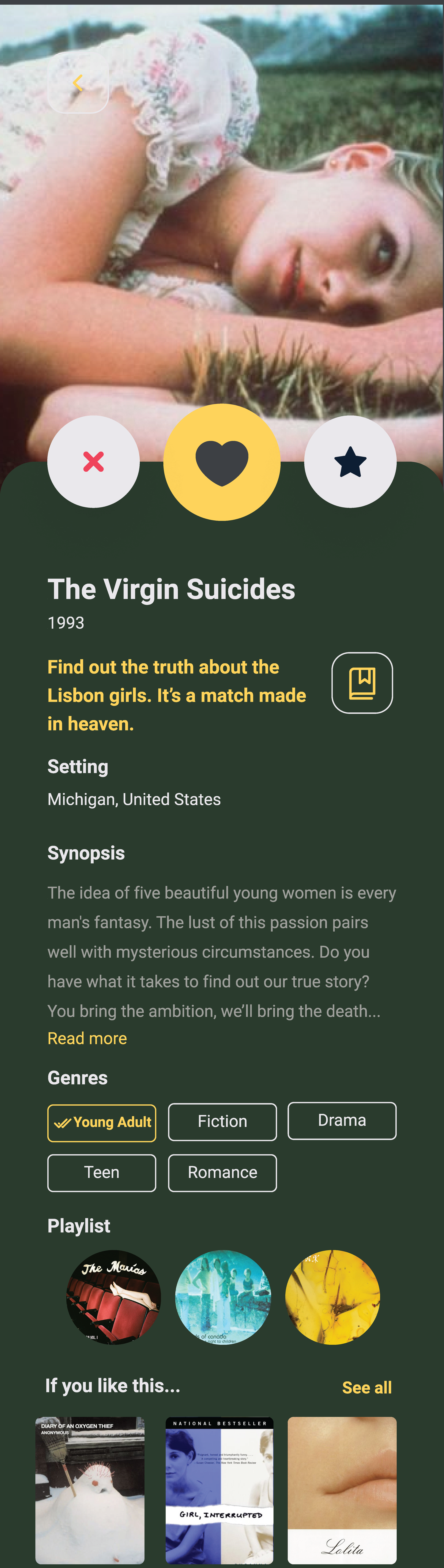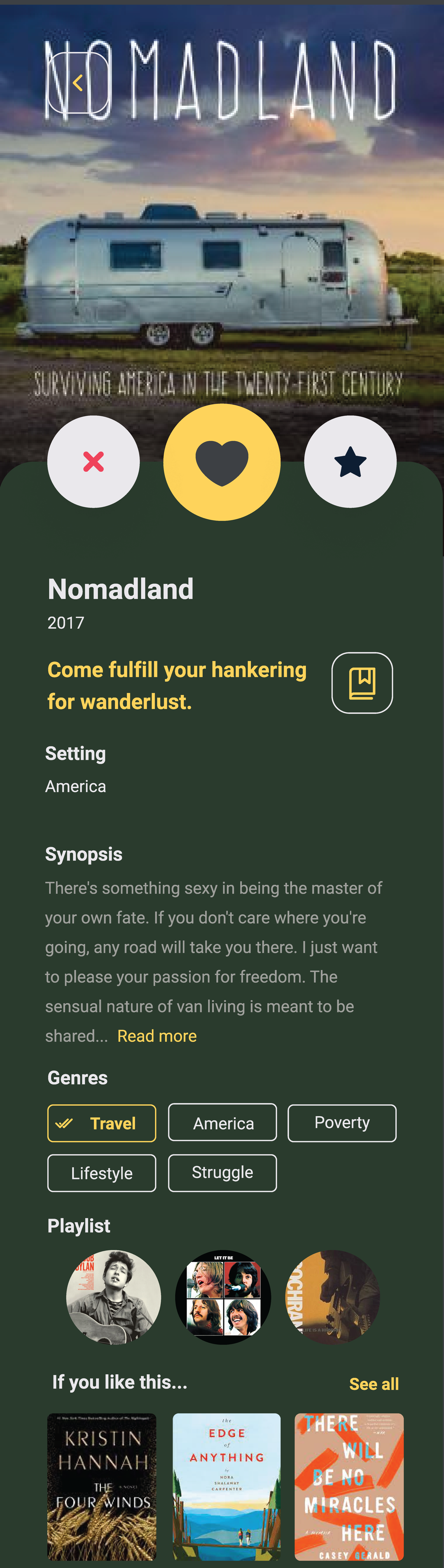 Our app aims to bring a familiar interface (swipe-right, swipe-left model) to the teen/young adult demographic to connect them with books, genres, and music.
